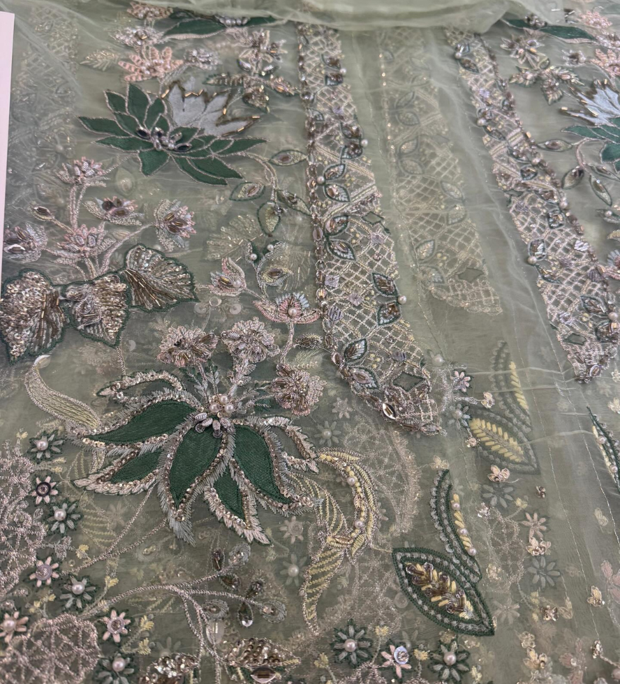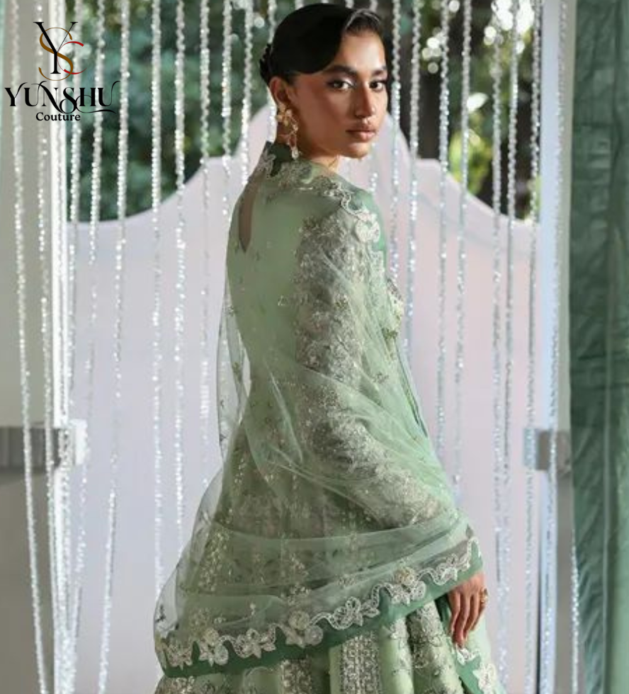 Yunshu Couture proudly presents this exquisite Mint Green luxury maxi, inspired by the timeless elegance of Soraya LIRIEN. Crafted for women who appreciate refined detailing and premium craftsmanship, this ensemble blends soft hues with intricate hand embellishment to create a truly graceful look.